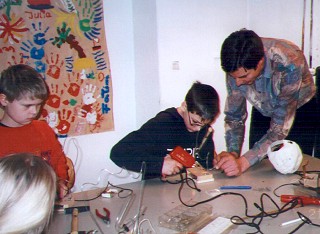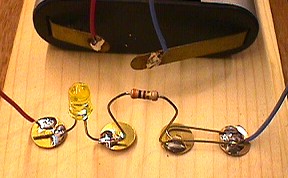 Wer in einer Jugendgruppe mit der Elektronik anfangen will, der muss sich einfache Versuche ausdenken, die mit wenig Aufwand sofort zu kleinen Erfolgen führen. Hier ein Vorschlag mit einer Brotbrettschaltung, die von ganz klein immer etwas weiter wächst. Es fängt an mit einer Leuchtdiode, einem Widerstand (100 bis 1000 Ohm), einer Batterie und einem selbst gebauten Schalter.
