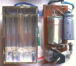 Wichtige Warnung: Diese Schaltung ist nichts für Kinder und unerfahrene Bastler. Die hohe Spannung ist sehr gefährlich. Also bitte mit äußerster Vorsicht arbeiten! Und der Elko muss nach jedem Probelauf mit einem Kurzschluss entladen werden, denn man sieht ihm nicht an, wieviel Spannung er noch hat. Wenn alles fertig ist, muss auf gute Isolierung und Berührungssicherheit geachtet werden.