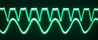 Der Generator liefert ein sauberes Sinus-Signal, obwohl die Transistoren praktisch als Schalter arbeiten und damit Rechtecksignale liefern. Die Differenz zwischen Sinus und Rechteck kann an der kleinen Hilfsdrossel mit 680 µH gemessen werden (oberes Oszillogramm). Sie erlaubt dem Schwingkreis eine saubere Schwingung.