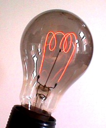 Die Lampe mit Wolfram-Glühfaden ist etwas kleiner und wesentlich heller als die Kohlefadenlampe. Wenn man den Fadenwiderstand im kalten Zustand misst, stellt man folgendes fest: Kohlefaden: 1280 Ohm, Wolframfaden: 92 Ohm. Beide Lampen waren ausgelegt für 220 Volt und 60 Watt. Der Nennstrom war also für beide 0,27 Ampere, der Arbeitswiderstand 810 Ohm. Also der Kohlefaden wird im heißen Zustand niederohmiger, der Metallfaden hochohmiger. Faustregel: Der Kaltwiderstand beträgt bei Wolframlampen 1/10 des Heißwiderstands.