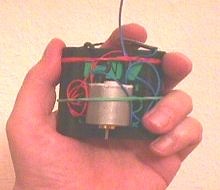 Und nun soll auch noch der zugehörige Sender gebaut werden. Am einfachsten geht es mit einem kleinen Gleichstrommotor. Der stört sowieso immer. Man braucht nur eine Antenne anzuschließen. Es muss kein Dipol sein, ein einzelner Draht geht auch. Die Antennen am Sender und am Empfänger sollen gleich lang sein. Beide waren beim Prototyp 50 cm lang. Die Wellenlänge war also 2 m (Die Funkamateure im 2-Meter-Band mögen mir verzeihen), die Frequenz etwa 150 MHz.