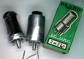 In Russland wurden wesentlich länger Röhren eingesetzt als bei uns. Deshalb wurden sie auch wesentlich weiter entwickelt. Das Ganze ist wohl eine Folge des kalten Krieges. Die militärische Nutzung sieht man auch an den Schnell-Ausziehknöpfen auf der robusten Metallhülle. Wenn dann der kalte Krieg mal heiß geworden wäre, hätte der erste elektromagnetische Puls schon jede Menge westliche Transistoren zerstört, während die östlichen Röhren dagegen immun waren. Und während der russische Fernmelder bei Bedarf blitzschnell seine Röhren gewechselt hat, heizt sein amerikanischer Kollege noch den Lötkolben an, um seine Dual-Gate-MOSFETs auszutauschen. Nur gut, dass es nie so weit gekommen ist! Als friedenssichernde Maßnahme werden jetzt alle militärischen Röhren zu Audionempfängern verbastelt.