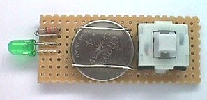 Lithium-Zellen mit 3 Volt können auch dann noch für LEDs verwendet werden, wenn sie z.B. für einen Taschenrechner schon zu schlapp sind. Eine Fassung kann man aus Draht selbst herstellen.