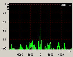 Übrigens, die DRM-Software ist auch sonst ein gutes Spielzeug. Man kann sich die Spektren verschiedener Sender ansehen. Das Bild zeigt einen AM-Rundfunksender mit dem starken Träger und seinen Seitenbändern.