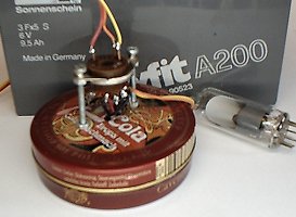 Wer eine alte Oszillographenröhre bekommt, möchte sie vielleicht wenigstens einmal ihrem Zweck entsprechend einsetzen. Dazu braucht man eigentlich nur die richtigen Spannungen an den richtigen Anschlüssen. Wo die einzelnen Beschleunigungselektroden und die Ablenkplatten am Sockel zu finden sind, kann man leicht durch einen Blick ins Innere klären. Der Versuch ist also auch dann möglich, wenn wie in diesem Fall keine Typenbezeichnung mehr zu erkennen ist.