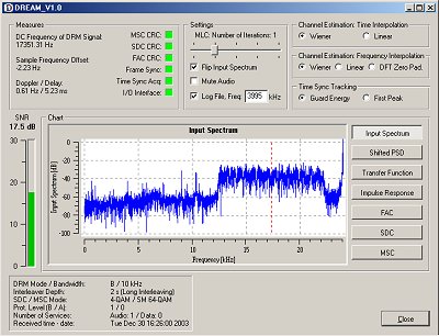 Seit dem 15.12.2003 arbeitet DRM mit einem neuen und verbesserten Übertragungsverfahren. Das offizielle DRM Software Radio wurde in der Version 2.0.34 herausgebracht. Volker Fischer und Alexander Kurpiers haben mit ihrer Open Source Software DREAM_V1.0 nachgezogen. Der einfache Empfänger arbeitet nur mit DREAM, weil dieses Programm nach DRM-Signalen im gesamten Spektrum zwischen Null und 24 kHz sucht. Praktisch sind Mittenfrequenzen zwischen 5 kHz und 19 kHz möglich. Diese Toleranz ist ideal für einfache Eigenbau-Empfänger.