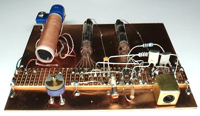 Die Mittelwelle wurde ausgewählt, weil bei der geringen Frequenz eine Chance bestand, einen genügend genauen frei schwingenden Oszillator zu bauen. Die Oszillatorröhre wird in Triodenschaltung verwendet, weil die etwas höhere Steilheit dann auch bei 12 V Anodenspannung noch ausreicht. Die multiplikative Mischstufe erhält das Oszillatorsignal am Schirmgitter. Am Steuergitter liegt eine abgestimmte Ferritantenne.