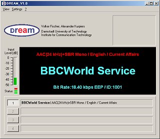 Zur Dekodierung wurde zunächst DREAM eingesetzt, weil eine genaue ZF-Lage von 12 kHz nur schwer justiert werden kann. Das Programm zeigt das bekannte DRM-Spektrum mit ausreichender Signalstärke und genügend Rauschabstand. Trotzdem wird das Tonsignal nur für kurze Momente hörbar.