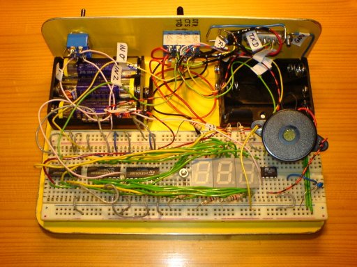 Die Spannungsregelung 7805 ist fliegend angeschraubt. Es besteht die Möglichkeit, auch ohne PC zu arbeiten, da mit Batterien entweder