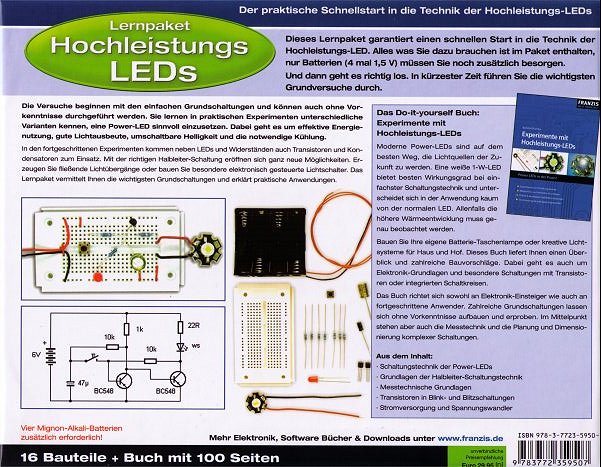 Dieses Lernpaket enthält das Buch "Experimente mit Hochleistungs-LEDs"