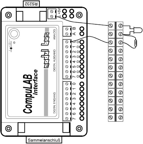 des CompuLAB. Jedes der acht Felder für die digitalen Ausgänge 0 bis 7 lässt