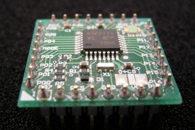 Inzwischen wird das Thema R8C auch bei AK MODUL-BUS ernst genommen. Im Online-Shop erhält man bereits Mikrocontroller vom Typ R8C/15, der auch im japanischen Starterkit verwendet wurde. In Elexs gibt es einen Startartikel zum Einsatz des Controllers. Das Bild zeigt das IC auf einer SMD-Adapterplatine.