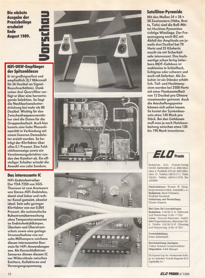 Empfänger der Spitzenklasse" erschienen, der in der ELO-Praxis 1989/08