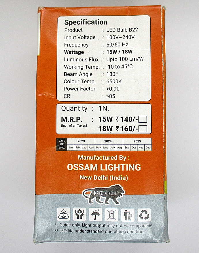 mit Bajonett-Sockel. Sie wurde in New Delhi hergestellt und kostet dort