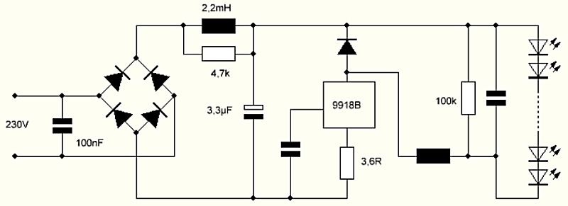der Leistungsangabe 18 W. Aber es fehlt hier ein Siebkondensator, deshalb kann