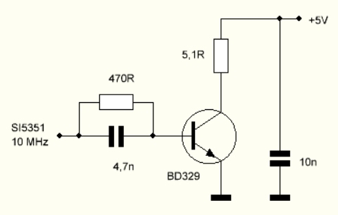 SI5351 und 10 MHz angesteuert, mit einer Platine, die gerade bei