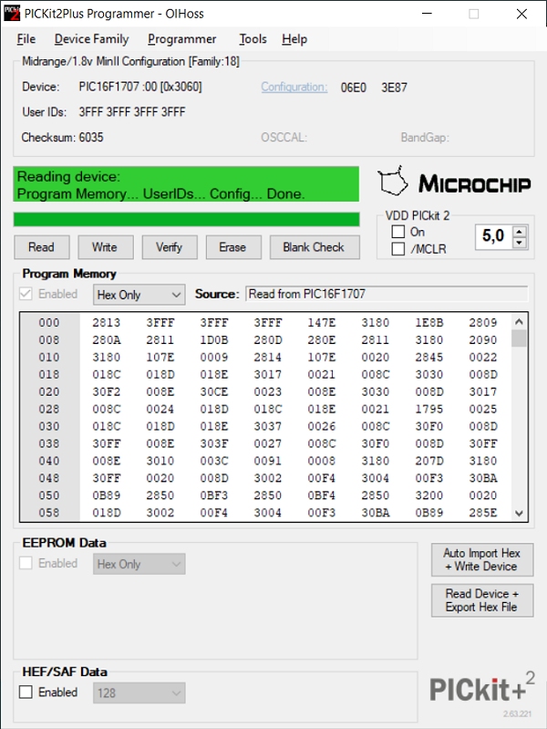 feststellen, dass die Brennersoftware vom Microchip meinen neueren Controller