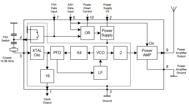 UHF-Sender K110B3. Für dieses IC konnte ich kein Datenblatt finden,