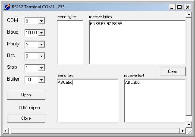 Megabaud. Dazu wurde RXD mit TXD verbunden, also ein Echo erzeugt. Mit
