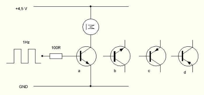 Innenwiderstand. Die richtige Schaltung ist a, ein NPN-Transistor in