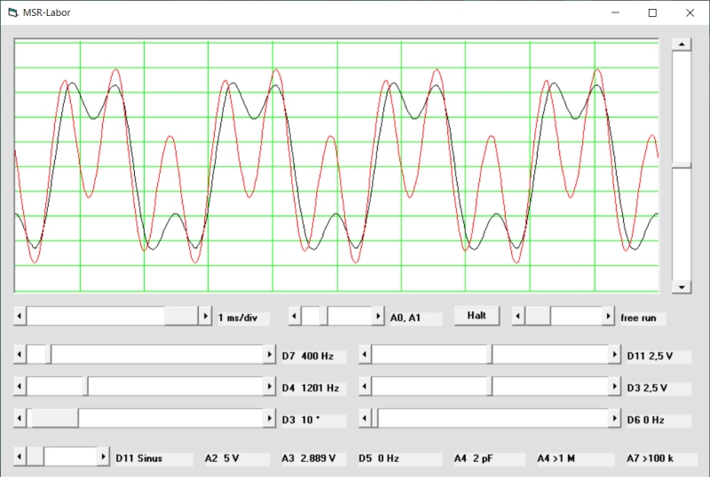MSR-Labor sieht man am Kanal 1 die gewünschte Überlagerung und im Kanal 2 die
