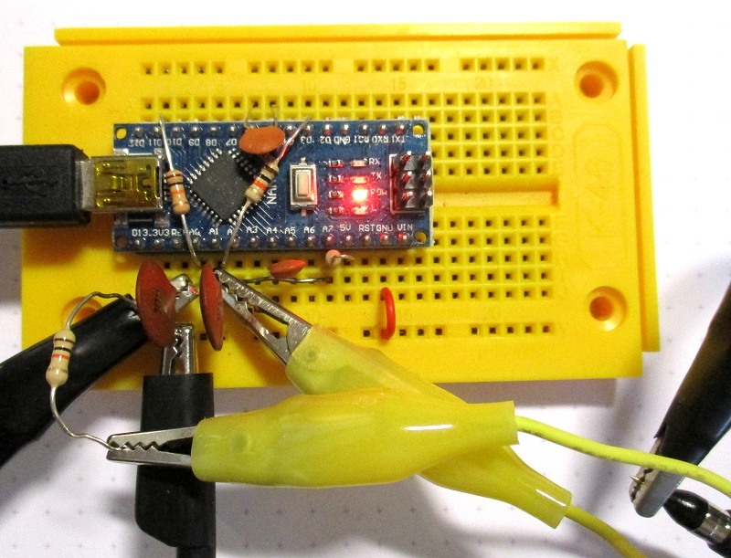 weiteren Widerstand mit 10 k zum ersten Kanal hinzugemischt. Damit