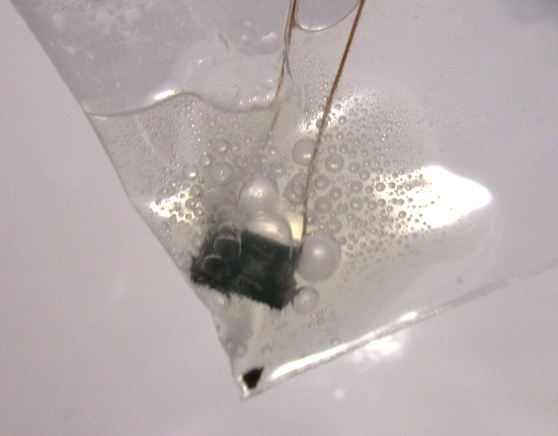 Eine geringe Menge Wasser in einer Plastiktüte konnte bei 10 V und 200