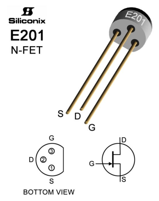 Im Internet findet man den Hinweis, dass der E201 durch den J201-18 zu ersetzen ist. Entscheidend ist hier das "-18" ...  Im Datenblatt des J201 findet man auch die Anschlussfolge für den "-18" Typ und damit hat man auch die Belegung des E201