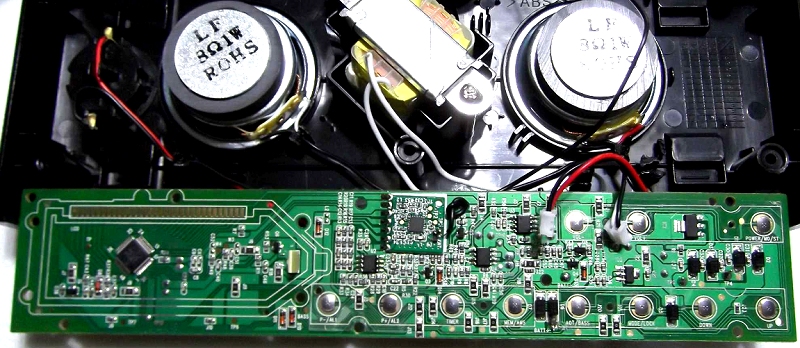 Bei Aldi liegt ein Küchenradio md84831 für 11€, mitnehmen oder nicht, ggf. Obduktion? Die Entwickler haben sich Mühe gegeben, alles was man in der Küche braucht zu realisieren. Die beiden 45mm Lautsprecher haben eine klare Sprachverständlichkeit, Musik ist auch noch ok. Unterm LCD werkelt ein 'MC14F2568' ? Für die HF ist ein 'AIRCHA AR100C' ? zuständig. Die beiden NF-Brückenendstufen sind abgeschliffen, egal, zum Ausschlachten ist kaum etwas zu gebrauchen.