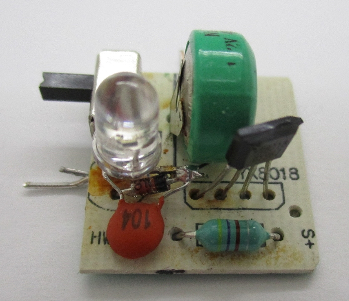 Kondensator und die 1N4148 entfallen können, die weiße LED ist bei