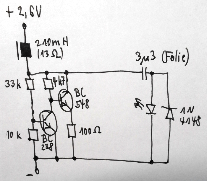 Bei einer Betriebsspannung von rund 2,6 Volt nimmt meine Schaltung