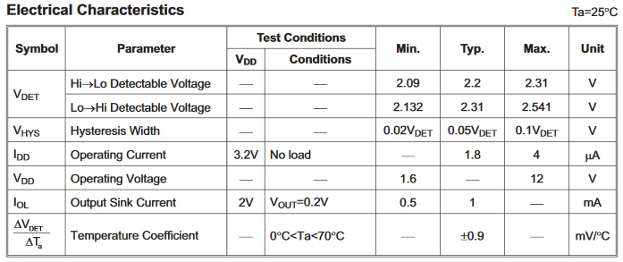 HT7022A, 2.2V Voltage Detector