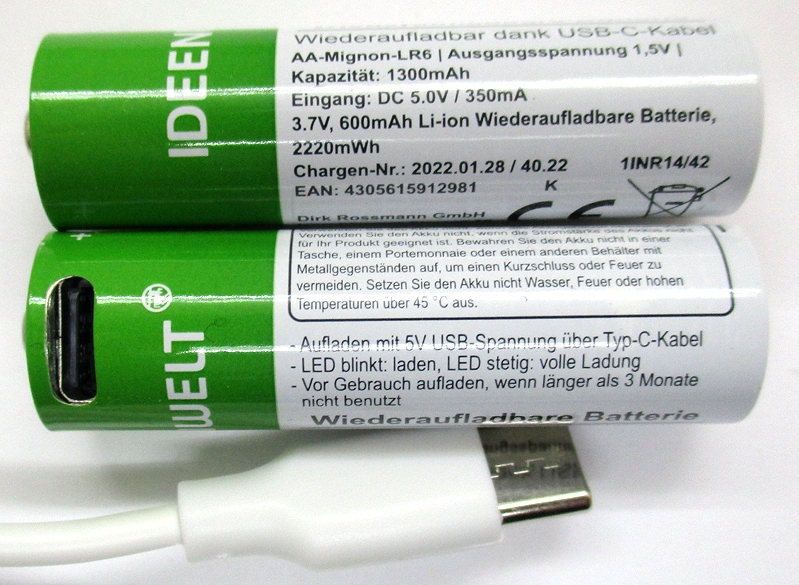 Li-Ion-Akkus in der Bauform AA und mit 1,5 V gab es im Viererpack mit