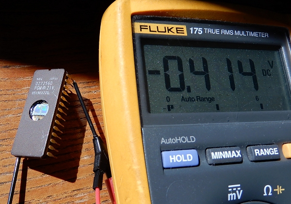 Ein altes EPROM liegt in der Sonne und bringt -0,41V