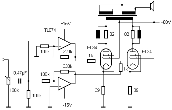 Röhrenverstärker mit jeweils zwei EL34 in einer Gegentakt-Endstufe. Ich hatte