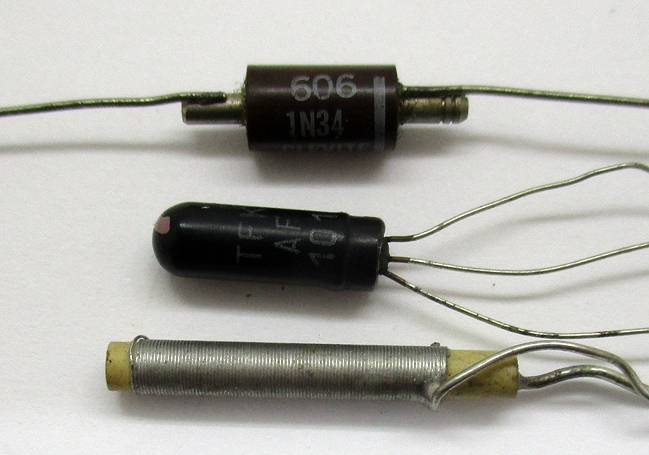 AF101. Darüber liegt eine alte Ge-Diode 1N34. Das Gehäuse verrät den
