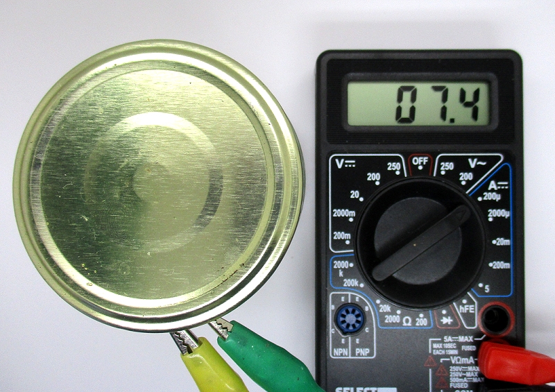 eine Spannung von 3,7 V gemessen. Zum Test wurde eine grüne LED mit