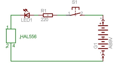 LED leuchtet heller, so wird das Magnetfeld angezeigt. Die Schaltung