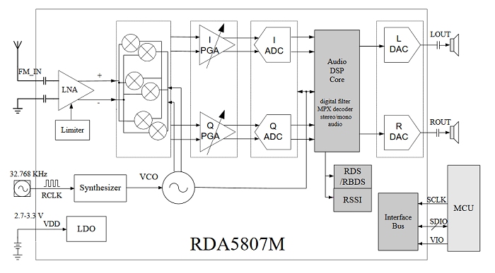 auch der Bausteintyp RDA5820N anzusprechen. Im Vergleich zum RDA5807M