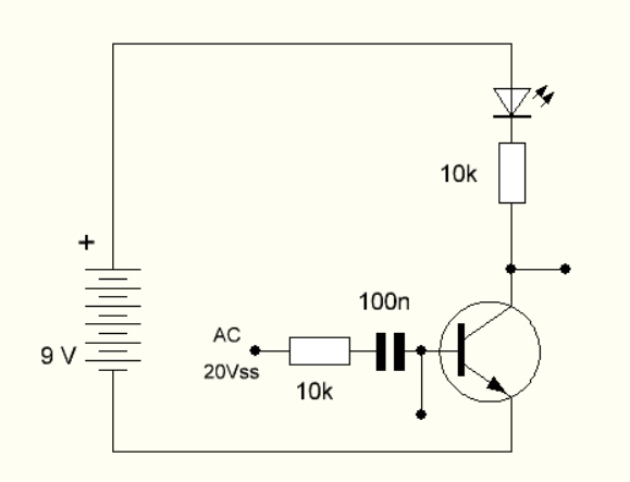 Wenn man einen Transistor ohne Basisvorspannung kapazitiv ansteuert,
