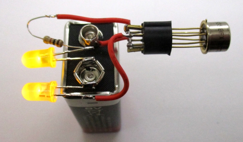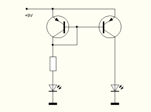 die eine LED wird durch den Widerstand eingestellt. Die zweite LED