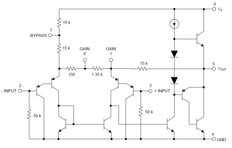 Das Schaltbild des LM386 klärt das Verhalten auf. Über den Pin 8
