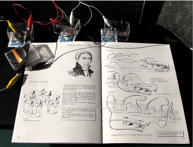 Abb. 5: Versuch zur Reihenschaltung von galvanischen Elementen aus dem Begleitheft