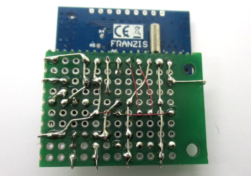 weiteren Bauteile auf eine kleine Rasterplatine gelötet, damit es auch