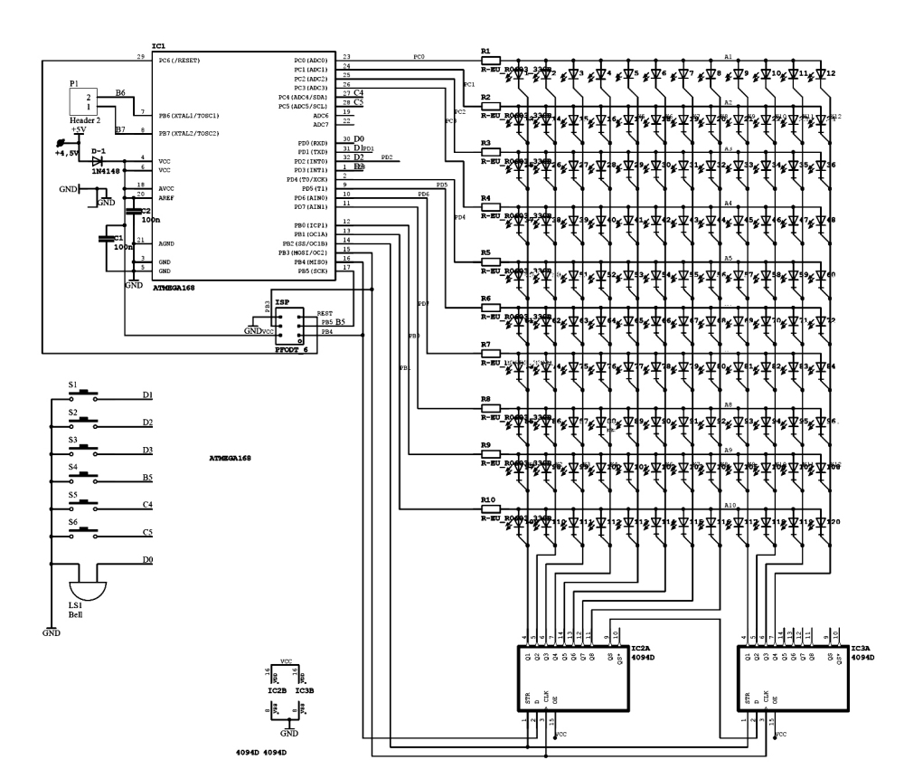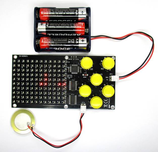 Den Kern des Spiels bildet ein ATmega168-Controller, der von