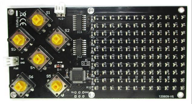 ist in zehn Reihen mit je 12 LEDs angeordnet. Der Mikrocontroller steuert die
