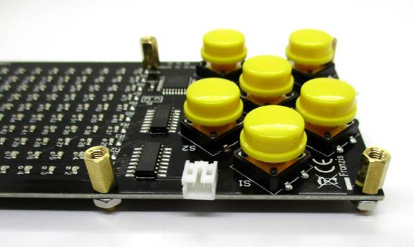 Tastern, dem Mikrocontroller und allen LEDs. Es gibt zwei Stecker, PWR (Power)
