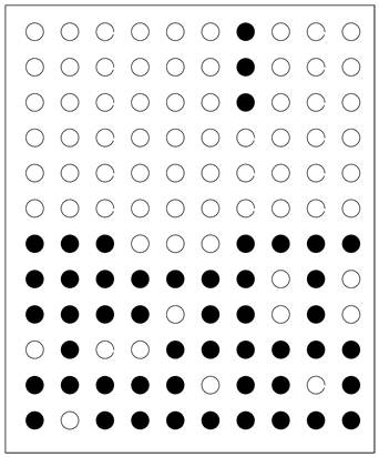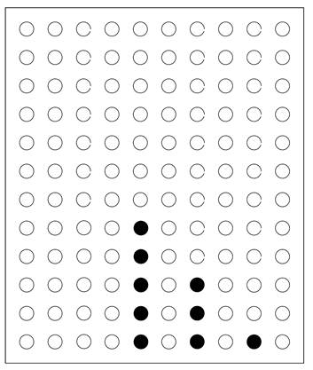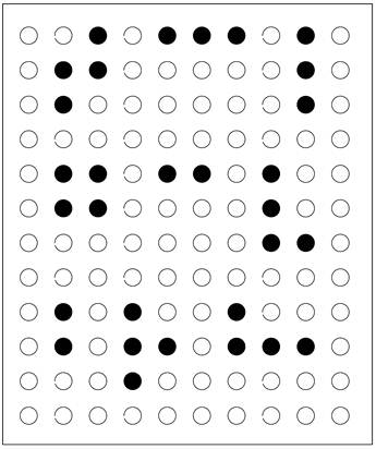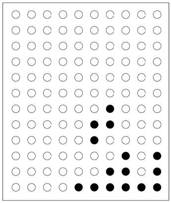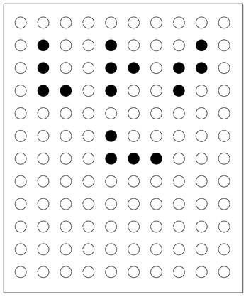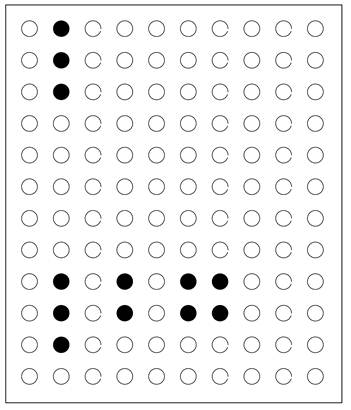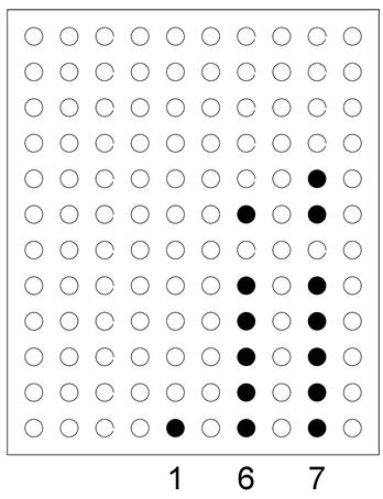 zwischen zwei und vier Punkte bringt. Jede Ziffer wird durch eine senkrechte