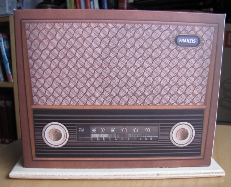 Der beigelegte Ausschneidebogen eignet sich gut zum Bau einer Lautsprecherbox in Retroradio-Optik, s. Mini-Lautsprecherboxen.