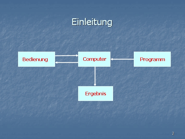 verarbeiten kann benötigt er ein Programm. Ein Programm besteht